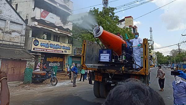 இந்த வகையில் முக்கியச் சாலைகள், மக்கள் நெருக்கடி மிகுந்த இடங்களில் கிருமிநாசினி தெளிக்கும் பணி மும்முரமாக நடைபெற்று வருகின்றன.