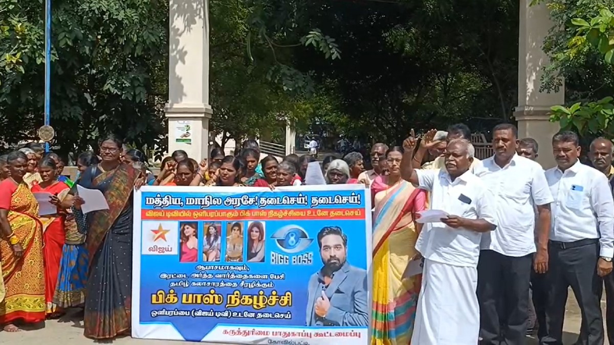 தூத்துக்குடி: பிக் பாஸ் தமிழ் சீசன் 8 தற்போது நடைபெற்று வரும் நிலையில், நிகழ்ச்சி நன்றாக இல்லை எனவும், விஜய் சேதுபதி மட்டும் ஓகே என கூறி வருகின்றனர் ரசிகர்கள். இந்நிலையில் தமிழகத்தில் கலாச்சார சீரழிவை ஏற்படுத்தும் விஜய் தொலைக்காட்சியின் பிக்பாஸ் நிகழ்ச்சியை தடை செய்ய வலியுறுத்தி கோவில்பட்டி கோட்டாட்சியர் அலுவலகத்தை கருத்துரிமை பாதுகாப்பு கூட்டமைப்பினர் முற்றுகையிட்டு ஆர்ப்பாட்டத்தில் ஈடுபட்டனர்.