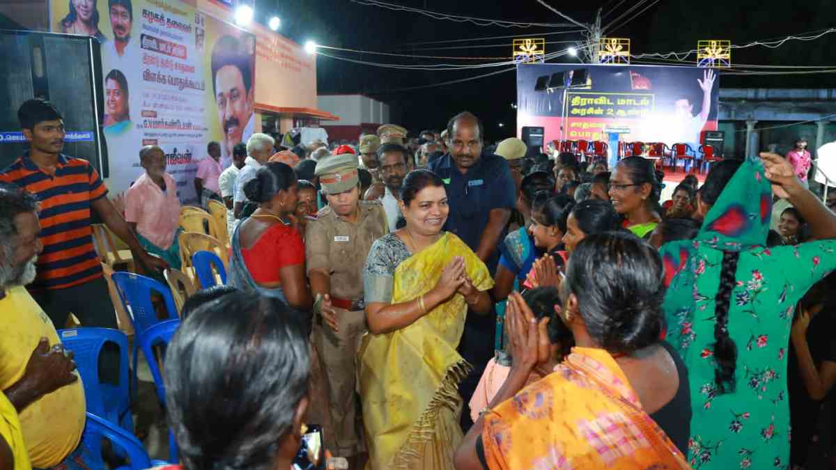அந்த வகையில் தூத்துக்குடி மாவட்டம் விளாத்திக்குளம் தொகுதிக்குட்பட்ட வீரபாண்டியபுரத்தில் நடைபெற்ற திமுக அரசின் 2 ஆண்டுகால சாதனை விளக்கப் பொதுக்கூட்டத்தில் அமைச்சர் கீதாஜீவன் கலந்துகொண்டார்.