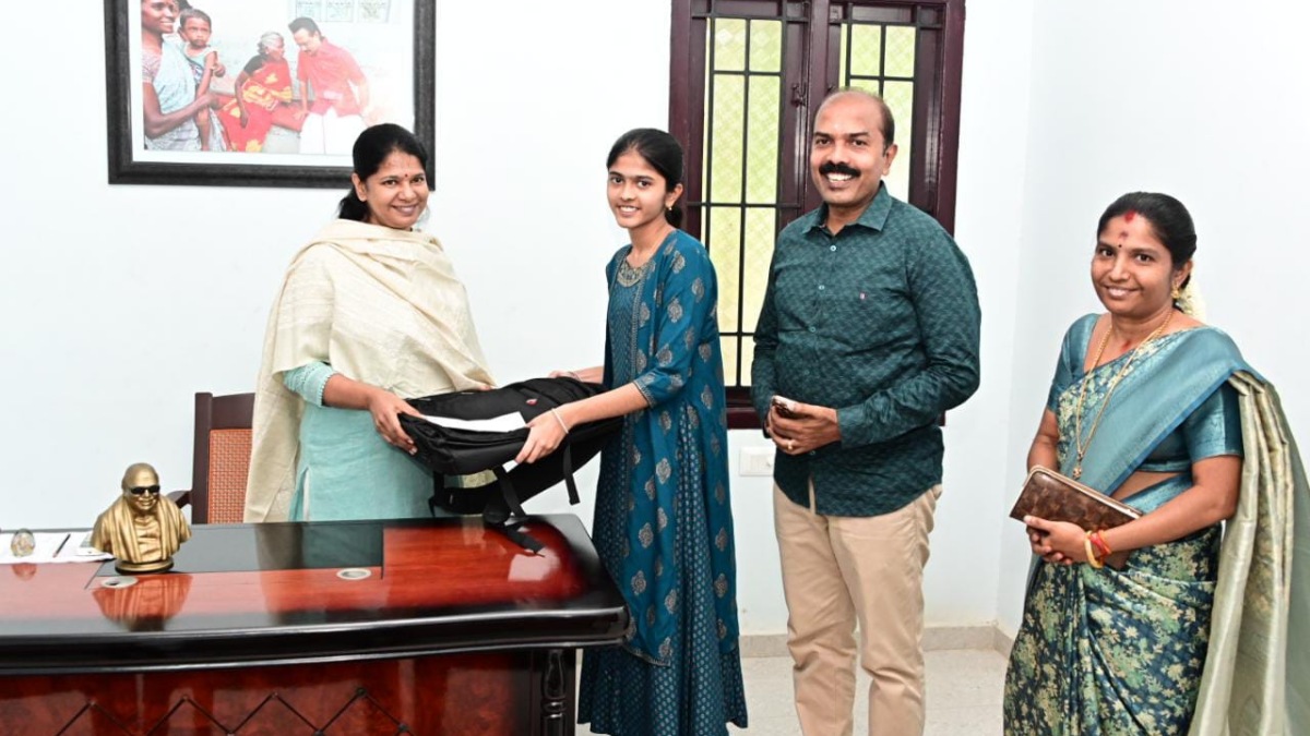 தூத்துக்குடி: பன்னிரெண்டாம் வகுப்பு பொதுத் தேர்வில் 600க்கு 598 மதிப்பெண்கள் எடுத்ததோடு பொறியியல் தரவரிசைப் பட்டியலிலும் முதல் மதிப்பெண் பெற்ற தூத்துக்குடி மாணவி நேத்ராவை நேரில் அழைத்து பாராட்டிய கனிமொழி எம்.பி., அவருக்கு ஊக்கமளிக்கும் வகையில் ஒரு குறிப்பிட்ட தொகையையும் கையில் கொடுத்துள்ளார்.
