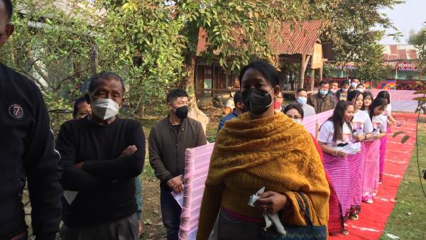 Long queues of voters outside polling stations in Manipur as voting for the first phase of #ManipurElections2022 continues. Visuals from Chingmeirong Rongmei Upper Primary School in Imphal. pic.twitter.com/ByOmPm2dR3