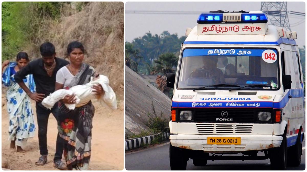 அப்போது சிறுமியை பரிசோதித்த மருத்துவர்கள் அவர் உயிரிழந்துவிட்டதாக தெரிவித்தனர். இதையடுத்து ஆம்புலன்ஸில் தங்கள் கிராமத்திற்கு சென்ற போது சாலை வசதி இல்லாததால் பாதியிலேயே டிரைவர் இவர்களை இறக்கிவிட்டுவிட்டார். இதனால் அந்த குழந்தையை 10 கி.மீ தூரத்திற்கு தூக்கிக் கொண்டு சென்றனர்.
