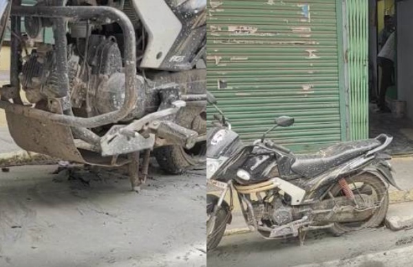 வேறு ஒன்றும் இல்லை காளிகாம்பாள் தெருவை சேர்ந்த சிவா என்பவர் தனது இருசக்கர வாகனத்தை நேற்று முன்தினம் இரவு தனது கடை முன்பு நிறுத்திவிட்டு சென்றார் காலையில் எழுந்து வந்து பார்த்தபோதுதான் அந்த தெருவில் புதிதாக சிமெண்ட் சாலை அமைக்கப்பட்டு இருந்தது தெரிய வந்தது அது கூட பரவாயில்லை அவ்வளவு பெரிய இருசக்கர வாகனம் நிற்பது கூட தெரியாமல் காண்ட்ராக்டர் குரூப்பில் வேலை செய்த அப்பரசண்டிகள் அந்த வாகனத்தை அகற்றாமல் அப்படியே சிமெண்ட் சாலை போட்டு விட்டு சென்று விட்டனர்.