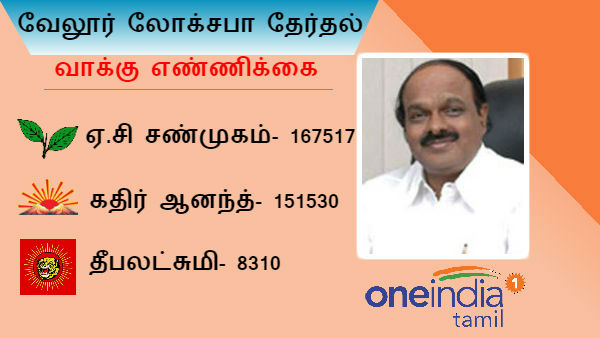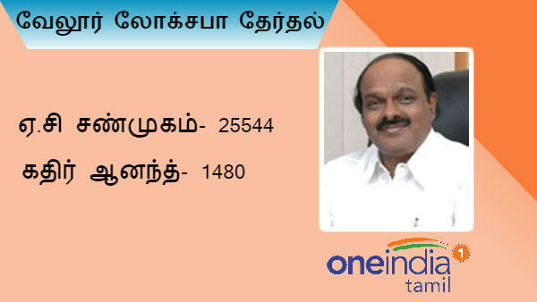 வேலூர் தேர்தல்: அதிமுக கூட்டணி வேட்பாளர் ஏ.சி சண்முகம் தொடர்ந்து முன்னிலை.