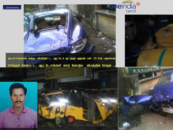 சென்னை: சென்னை டாக்டர் ராதாகிருஷ்ணன் சாலையில் இன்று அதிகாலை தாறுமாறாக ஓடிய போர்சே சொகுசு கார் ஒன்று, சாலையோரம் நின்றுக்கொண்டிருந்த ஆட்டோக்கள் மீது மோதிய விபத்தில் ஆட்டோ ஓட்டுனர் ஒருவர் பரிதாபமாக உயிரிழந்தார். 12 ஆட்டோக்கள் சேதமடைந்த இந்த விபத்தில் ஆட்டோக்களில் உறங்கிக் கொண்டிருந்த 11 டிரைவர்கள் படுகாயம் அடைந்தனர். காரை ஓட்டி வந்த விகாஷ் என்ற இளைஞர் குடிபோதையில் இருந்ததே இந்த விபத்திற்கு காரணம் என்று சொல்லப்படுகிறது. இவர் உச்சநீதிமன்ற வழக்கறிஞர் விஜய் ஆனந்த் என்பவரின் மகன் ஆவார். இந்த விபத்து தொடர்பாக வழக்குப்பதிவு செய்த போலீசார், விகாஷைக் கைது செய்துள்ளனர்.