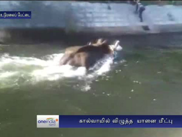 உடுமலை அருகே கால்வாயில் தவறி விழுந்த யானை... போராடி மீட்பு - வீடியோ