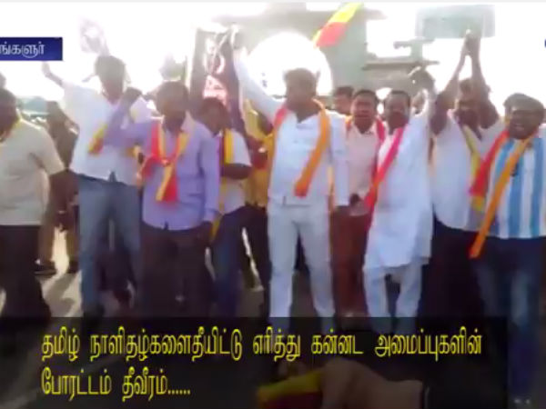 செய்தித்தாள் எரிப்பு.. தமிழ் சேனல்கள் கட்.. கர்நாடகாவில் தமிழர்கள் இயல்பு வாழ்க்கை முடக்கம்- வீடியோ