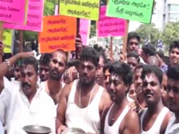 பட்டை நாமம், கையில் திருவோடு... மீண்டும் பணி வழங்கக்கோரி ஊழியர்கள் நடத்திய நூதனப் போராட்டம்- வீடியோ