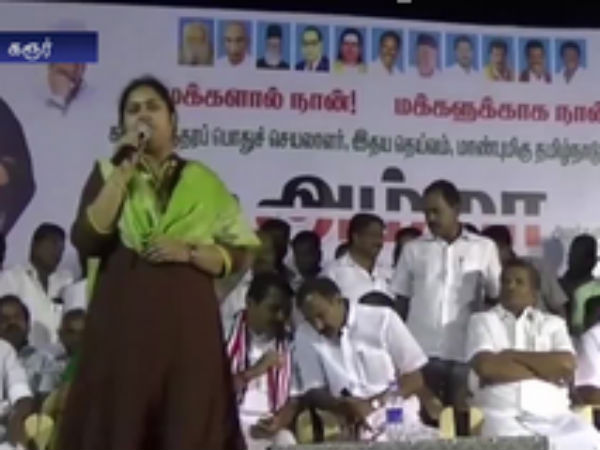 கரூர்: கரூர் மாவட்டம் அரவக்குறிச்சியில் நாளை தேர்தல் நடைபெற உள்ளது. இதையொட்டி தேர்தல் பிரச்சாரம் நேற்று மாலையுடன் முடிவடைந்தது. இந்நிலையில், அதிமுக வேட்பாளர் செந்தில் பாலாஜிக்கு ஆதரவாக அக்கட்சியின் நட்சத்திர வேட்பாளர்கள் வாக்கு சேகரித்தனர். அப்போது பேசிய நடிகை விந்தியா, "ஜெயலலிதா குணத்தில் தங்கம், கோபத்தில் சிங்கம்" என அடுக்குமொழியில் உரையாற்றினார். மேலும், மருத்துவமனையில் சிகிச்சைப் பெற்று வரும் முதல்வர் ஜெயலலிதாவிற்கு இந்தத் தேர்தல் வெற்றியினை பரிசாக வழங்க வேண்டும் எனவும் அப்போது அவர் கேட்டுக் கொண்டார்.