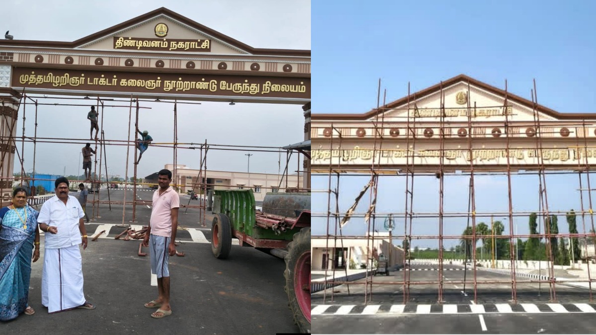 திண்டிவனம் அரசு பஸ் ஸ்டாண்டில் யார் பாருங்க.. அகற்றப்பட்ட கலைஞரின் பெயர்.. விழுப்புரம் கதர்கள் குஷி