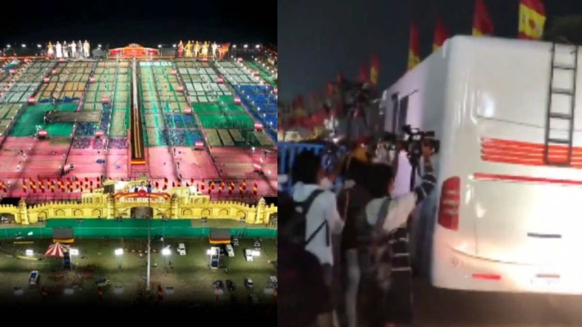 கேரவனில் வந்த விஜய், மாநாட்டு திடலில் அமைக்கப்பட்டுள்ள மேடைக்குப் பின்புறம் உள்ள பகுதியில் கேரவன் ஒன்றில் விஜய், தவெக பொதுச் செயலாளர் புஸ்ஸி ஆனந்த் உள்ளிட்ட முக்கிய நிர்வாகிகளுடன் ஆலோசனை நடத்தி உள்ளார்.