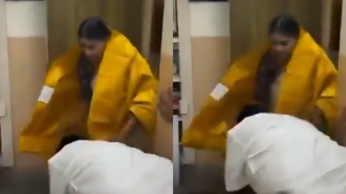 இந்நிலையில் தான் தற்போது இணையதளத்தில் வீடியோ ஒன்று வெளியாகி உள்ளது. அந்த வீடியோவில் அமைச்சர் பொன்முடி சேரில் அமர்ந்து இருக்கிறார். அவர் அருகே அவரது மனைவி விசாலாட்சி நிற்கிறார். இந்த சமயத்தில் விழுப்புரம் தொகுதியில் வெற்றி பெற்று மீண்டும் எம்பியாகி உள்ள விடுதலை சிறுத்தைகள் கட்சியின் ரவிக்குமார், அமைச்சர் பொன்முடியின் மனைவி விசாலாட்சியின் காலில் விழுந்து ஆசீர்வாதம் வாங்குகிறார்.