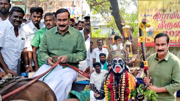 சிவகாசியில் விருதுநகர் மத்திய மாவட்ட பா.ம.க. ஏற்பாடு செய்திருந்த இரண்டாமாண்டு கிராமிய திருவிழாவைத் தொடங்கி வைத்த பா.ம.க. தலைவர் அன்புமணி ராமதாஸை, குதிரை வண்டியில் ஊர்வலமாக அழைத்து வந்தனர்.