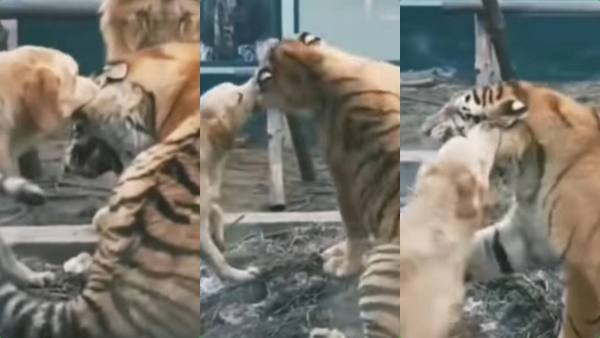 வாஷிங்டன்: புலியை வீண் வம்புக்கு இழுக்கும் வகையில் கோல்டன் ரெட்ரீவர் வகை நாய் ஒன்று அதன் காதை கடித்து சண்டைபோடும் வீடியோ காட்சி சமூக வலைத்தளத்தில் தீயாக பரவி வருகிறது.