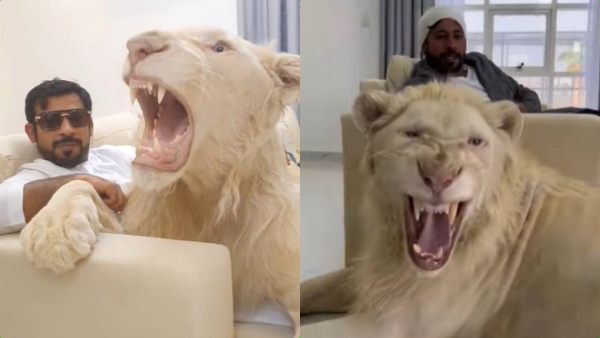 எனினும் சில நாடுகளில் உரிய அனுமதியின் பேரில் சிங்கத்தை வீட்டில் வளர்க்கவும் அனுமதி அளிக்கப்படுகிறது என்றும் சொல்லப்படுகிறது. இந்த நிலையில், ஹூமைத் அப்துல்லா என்பவர் வெள்ளை நிற சிங்கம் ஒன்றை நாய்குட்டியை போல தனது வீட்டில் வளர்த்து அதனுடன் கொஞ்சி விளையாடி அது தொடர்பான வீடியோ பதிவுகளை தனது இன்ஸ்டாகிரம் பக்கத்திலும் பகிர்ந்து வருகிறார். ஹூமைத் அப்துல்லாவின் இந்த பதிவுகள் இணையத்தில் வேகமாக பரவுகின்றன.