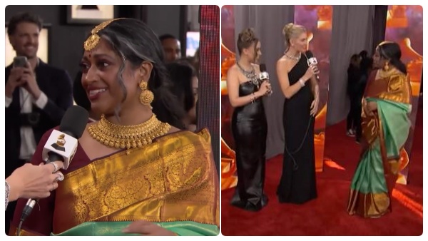 அமெரிக்காவில் கிராமிய விருது வழங்கும் விழாவில் காஞ்சிபுரம் பட்டுப்புடவையில் ஜொலித்த இசை கலைஞர்