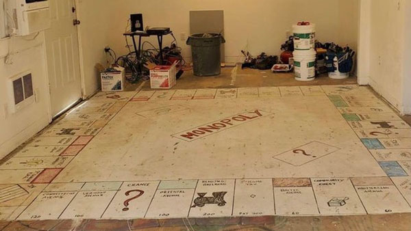 ஒரு தம்பதியினர் தங்கள் வீட்டை மறுசீரமைக்கும் பொருட்டு சில மாற்றங்களை செய்ய முயற்சிக்கும் போது கீழிந்த கார்பெட்டுக்கு அடியிலிருந்த தரை மோனோபோலி கேம் போர்டு வடிவில் அமைந்திருந்ததை கண்டு ஆச்சரியம் அடைந்தனர். அச்சு அசலாக மோனோபோலி விளையாட்டை பிரதிபலிக்கும் விதமாக இருந்தது அது.