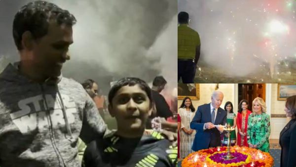 படபடவென பட்டாசு வெடிக்குது..அமெரிக்காவிலும் களைகட்டிய தீபாவளி! ஒன்றாக சேர்ந்து மகிழ்ந்த இந்தியர்கள்