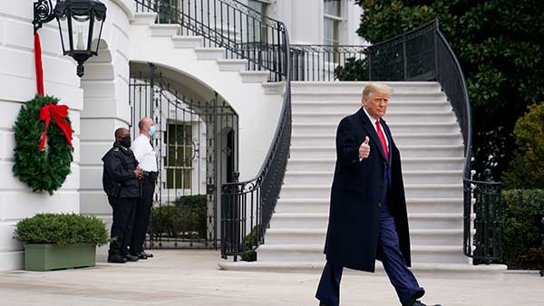 இன்னும் ஒரு மாதத்திற்கும் குறைவான நாள்களே அமெரிக்க அதிபராக டிரம்ப் இருப்பார். இந்நிலையில், டிரம்ப் தனது மனைவி மெலினா கிறிஸ்துமஸ் விடுமுறையைக் கொண்டாட வெள்ளை மாளிகையிலிருந்து நேற்று புறப்பட்டார். அவர்கள் இருவரும் புளோரிடா மாகாணத்திலுள்ள டிரம்பின் மார்-எ-லாகோ ரிசார்ட்டில் விடுமுறையைக் கழிக்கவுள்ளனர்.