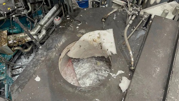 அப்போது எதிர்பாராத விதமாக அந்த உலையின் திறந்த பகுதி வழியாக உள்ளே தவறி விழுந்து விட்டார். 720 டிகிரி செல்சியஸ் வெப்ப நிலை கொண்ட அலுமினியங்கள் நிறைந்த அந்த தொட்டிக்குள் அந்த இளைஞர் விழுந்ததும் ஒரு நிமிடம் அங்கு இருந்த ஊழியர்கள் பதறிப்போகினர். அவசர அவசரமாக அந்த நபரை மீட்கும் பணி நடைபெற்றது. இறுதியில் அதீத வெப்பத்தால் ஏற்பட்ட காயங்களுடன் அந்த இளைஞர் தொட்டியில் இருந்து மீட்கப்பட்டார்.