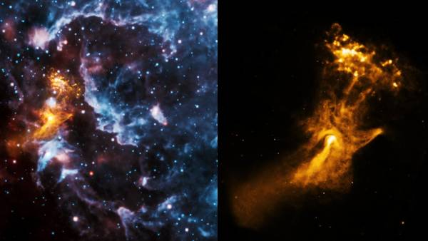 அதேநேரம், கை போன்ற உருவத்தில் உள்ள அந்த ஒளி மூட்டம் என்ன என்பது குறித்தும் நாசா அந்த இன்ஸ்டாகிராம் பதிவில் விளக்கம் அளித்துள்ளது. அதாவது, விண்மீன் வெடித்து சிதறிய பின்பு உண்டான பல்சர் ஒன்றால் உருவான ஆற்றல் மற்றும் துகள்களின் மூட்டம் என்கிறார்கள். அதாவது, இதை துடிப்பு விண்மீன் என்கிறார்கள். தங்க நிறத்தில் கை போன்ற உருவமாக தெரிகிறது.