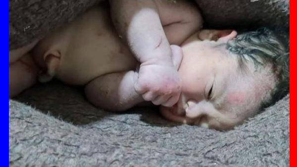 இடிபாடுகளில் இருந்து உயிருடன் மீட்கப்பட்ட பச்சிளம் குழந்தையின் வீடியோ ஷேர் ஆகி வருகிறது