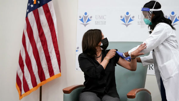 இந்நிலையில், தடுப்பு மருந்து குறித்து மக்களிடையே, குறிப்பாக கறுப்பினத்தவர்கள் மத்தியில் நம்பிக்கையை ஏற்படுத்தும் வகையில் துணை அதிபராகத் தேர்ந்தெடுக்கப்பட்டுள்ள கமலா ஹாரிஸ் மக்களுக்கு முன்னிலையில் நேற்று தடுப்பு மருந்தை எடுத்துக்கொண்டார். அமெரிக்கத் தலைநகர் வாஷிங்டனிலுள்ள யுனைடெட் மெடிக்கல் சென்டரில் அவர் தனது தடுப்பு மருந்தின் முதல் டோஸை எடுத்துக்கொண்டார். பெருவாரியான கறுப்பினத்து மக்கள் முன்னிலையில் அவர் தடுப்பு மருந்தை எடுத்துக்கொண்டார், இது தொலைக்காட்சிகளிலும் நேரலையாக ஒளிபரப்பப்பட்டது.