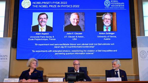 வாஷிங்டன்: 2022-ம் ஆண்டுக்கான இயற்பியலுக்கான நோபல் பரிசு பிரான்ஸ் நாட்டின் அலைன் ஆஸ்பெக்ட், அமெரிக்காவின் ஜூன் எப் கினாசர் மற்றும் ஆஸ்திரியாவின் அண்டன் ஸிலிங்கர் ஆகிய 3 பேருக்கு அறிவிக்கப்பட்டுள்ளது.