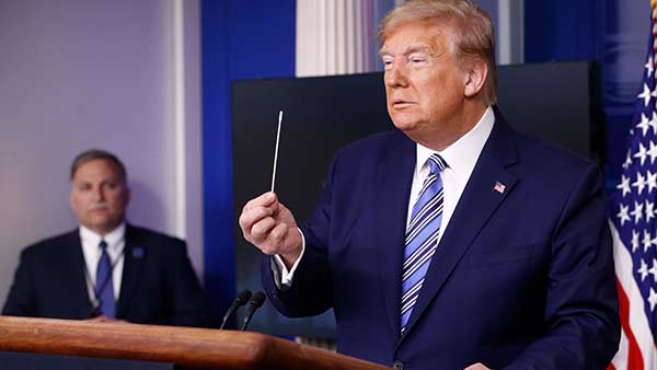 அந்த வகையில்தான் நாங்கள் அணுகுகிறோம். அடையாளம் கண்டறிதல், தனிமைப்படுத்துதல், கான்டாக்ட் டிரேசிங் ஆகிய காரணிகள் மூலம் சோதனை செய்து நாட்டை பாதுகாப்பானதாக கொண்டு செல்வோம் என்றார். இந்தியா உள்ளிட்ட 9 நாடுகளை காட்டிலும் அதிகமான நபர்களுக்கு நாங்கள்தான் கொரோனா சோதனைகளை செய்து வருகிறோம். அதனால்தான் எங்களுக்கு அதிக எண்ணிக்கை காட்டுகிறது என இந்தியாவை கடந்த சில வாரங்களுக்கு முன்னர் வம்பிழுத்த டிரம்ப் தற்போது எந்த நாடுகளையும் குறிப்பிடாமல் அதே கருத்தையே கூறியுள்ளார்.