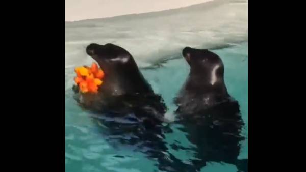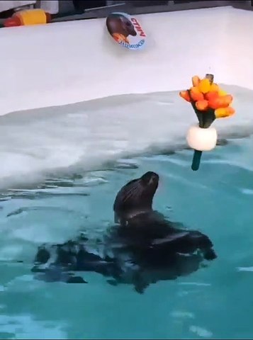அந்த வீடியோவில் ஒரு நீச்சல் குளத்தில் இரு சீல்கள் இருக்கிறது. அதில் ஆண் சீல் ஒன்று பூக்களை எடுத்துக் கொண்டு செல்கிறது. பூக்களை நேரடியாகப் பெண் சீல் ஒன்றுக்கு அது தருகிறது. ஆரஞ்சு டூலிப் பூக்களை அந்த பெண் சீலிடம் கொடுக்கிறது. அதை மிகவும் மகிழ்ச்சியாக அந்த பெண் சீல் வாங்கிக் கொள்கிறது. இரு சீல்களுக்கும் இடையே இருக்கும் காதலை இது வெளிப்படுத்தும் வகையில் உள்ளது.