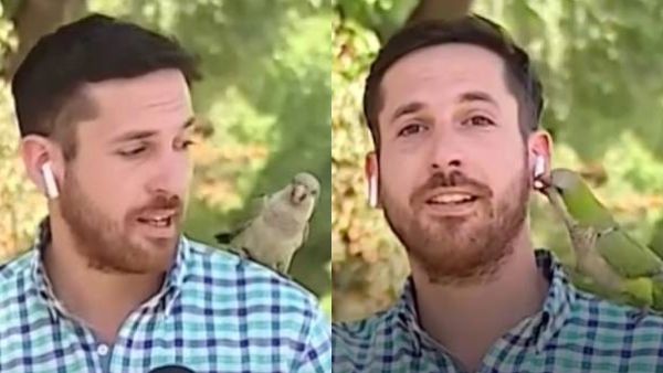 நேரலையில் செய்தி வழங்கிய ரிப்போர்ட்டரிடம் 'இயர்போனை ஆட்டைய போட்ட கிளி'.. பரவும் வீடியோ!