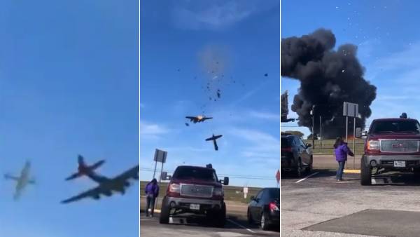 இதற்கிடையே போயிங் பி-17 ரக விமானம், சிறிய ரக விமானம் ஒன்றொடொன்று மோதிக்கொண்டதன் வீடியோ தற்போது வெளியாகி உள்ளது. அதில் 2 விமானங்களும் தரையில் இருந்து சிறிய தூரம் பறக்கின்றன. இருவேறு திசைகளில் இருந்து வந்த விமானங்களில் திடீரென்று ஒரே நேர்க்கோட்டில் பறந்தபோது பயங்கரமாக மோதிக்கொண்டன. இது நெஞ்சை பதைபதைக்க செய்கிறது.