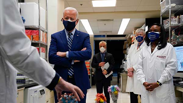 ஆய்வகத்தை இன்று அதிபர் பைடன் பார்வையிட்டார். அங்கு பணிபுரியும் ஊழியர்களுடன் கலந்துரையாடிய அதிபர் பைடன், தடுப்பூசி உற்பத்தி செய்யும் பணிகள் குறித்துக் கேட்டறிந்தார்.