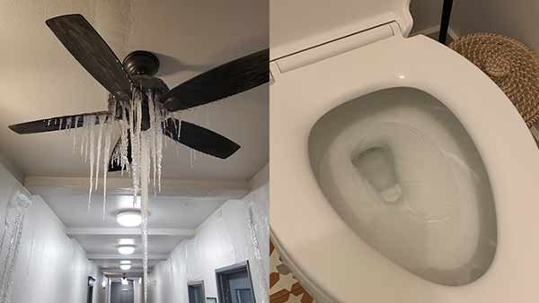 வீட்டு பாத்ரூமிலுள்ள தண்ணீர் உறைந்துபோனால் எப்படி குளிக்க முடியும்? டல்லாஸ் நிலவரம் இப்படி இருக்கிறது. இந்த புகைப்படத்தை பார்த்தால் அமெரிக்க மக்கள் நிலைமை உங்களுக்கே நன்றாக புரியும். உலகின் பணக்கார நாடு, இப்போது குளிக்கவும், காலைக் கடனை முடிக்கவும் கூட சிரமப்படும் நிலையில் இருப்பதைத்தான் இந்த படங்கள் சுட்டிக் காட்டுகின்றன.