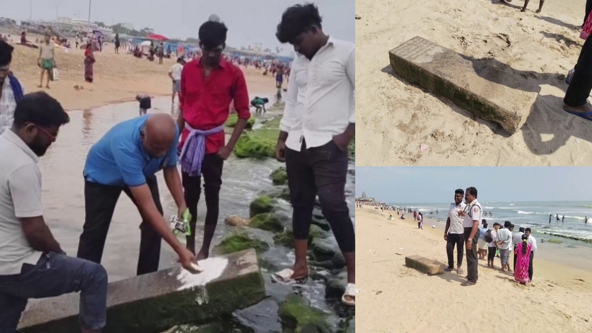 இந்த நிலையில் தான் இன்று கண்டுபிடிக்கப்பட்டுள்ள 2 கல்வெட்டுகள் முக்கியத்துவம் வாய்ந்ததாக பார்க்கப்பட்டது. மேலும் இதை பாதுகாக்க வேண்டும் என்ற கோரிக்கையும் எழுந்தது. இந்த நிலையில் இன்று கடற்கரையில் ஒரு அதிர்ச்சி சம்பவம் நடந்தது. கல்வெட்டுகளை பத்திரப்படுத்தி பாதுகாப்பதற்காக திருச்செந்தூர் கோவில் கடற்கரை பணியாளர்கள் அந்த கல்வெட்டு இருந்த கல்லை தேடிச் சென்றனர். அதை பார்த்த அவர்களுக்கு அதிர்ச்சி காத்திருந்தது.