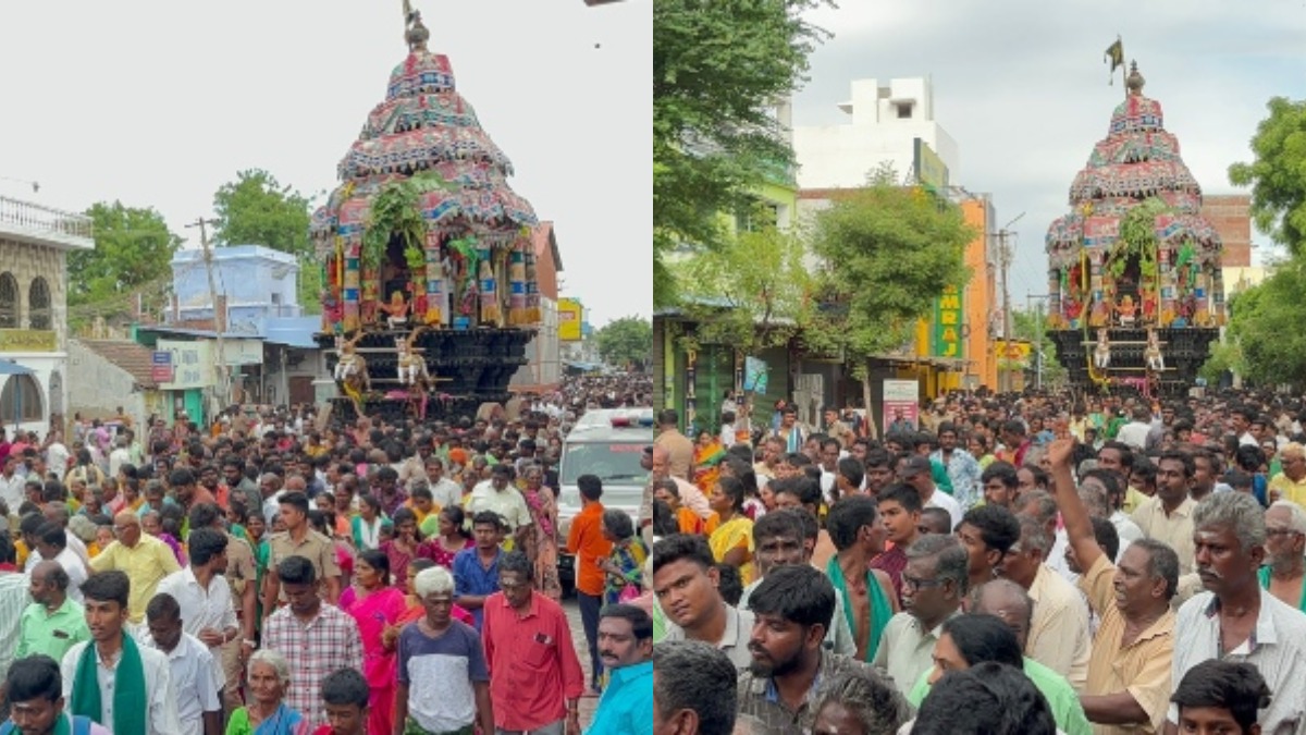 கோவிலின் அருகினில் கூடிய கூட்டங்கள்.. தலையா? கடல் அலையா? ஆவணி தேரில் அசைந்தாடி வந்த செந்தில்குமரன்