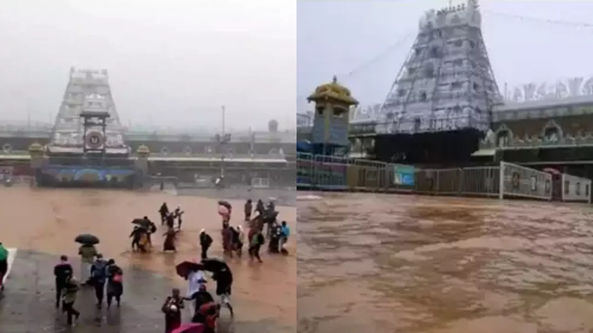 அதன்படி நேற்று முதலே திருமலை திருப்பதியில் கனமழை பெய்து வருகிறது. இதனால் ஏழுமலையான் கோயில் முன்பு கெண்டை கால் அளவுக்கு தண்ணீர் தேங்கி ஆறு போல் ஓடி கொண்டிருந்தது. சுவாமி தரிசனம் செய்த பக்தர்கள் கடுமையான பாதிப்பை சந்தித்தனர்.