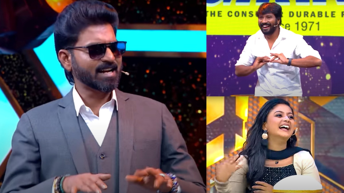 அதில் இந்த வார சிறப்பு விருந்தினராக கலந்து கொண்டிருக்கும் சிறகடிக்க ஆசை சீரியல் முத்து, மீனா, விஜயா மற்றும் ரோகினி போன்றார் நிகழ்ச்சியில் செம ஆட்டம் போட்டு இருக்கின்றனர். அப்போது "சிரிச்சா போச்சு" என்ற ரவுண்டில் எல்லோரையும் சிரிக்க வைப்பதற்காக அமுதவாணன், ராமர், நாஞ்சில் விஜயன் போன்றோர் காமெடி செய்து கொண்டிருக்கின்றனர்.