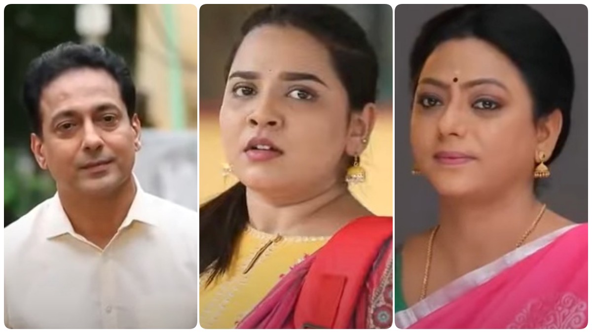 அதைத்தொடர்ந்து வீட்டில் ராமமூர்த்தி அவள் வருவாளே என்று பாட்டு பாடி கொண்டு ஜாலியாக இருக்க, அப்போது அங்கு வரும் ஜெனி ராமமூர்த்தி இடம் பேசிக் கொண்டிருக்கிறார். அந்த நேரத்தில் வரும் எழில் பாட்டி வரமாட்டேன் என்று சொல்லிட்டாங்க என்று சொல்ல, ராமமூர்த்தி ரொம்பவே சோகமாகிறார். பிறகு வீட்டிற்கு வெளியே வந்து பாருங்க என்று சொல்ல, அங்கு கையில் ருத்ராட்ச மாலையோடு காவி உடையில் ஈஸ்வரி வந்து நிற்கிறார். இத்துடன் இன்று எபிசோடு முடிவடைகிறது.