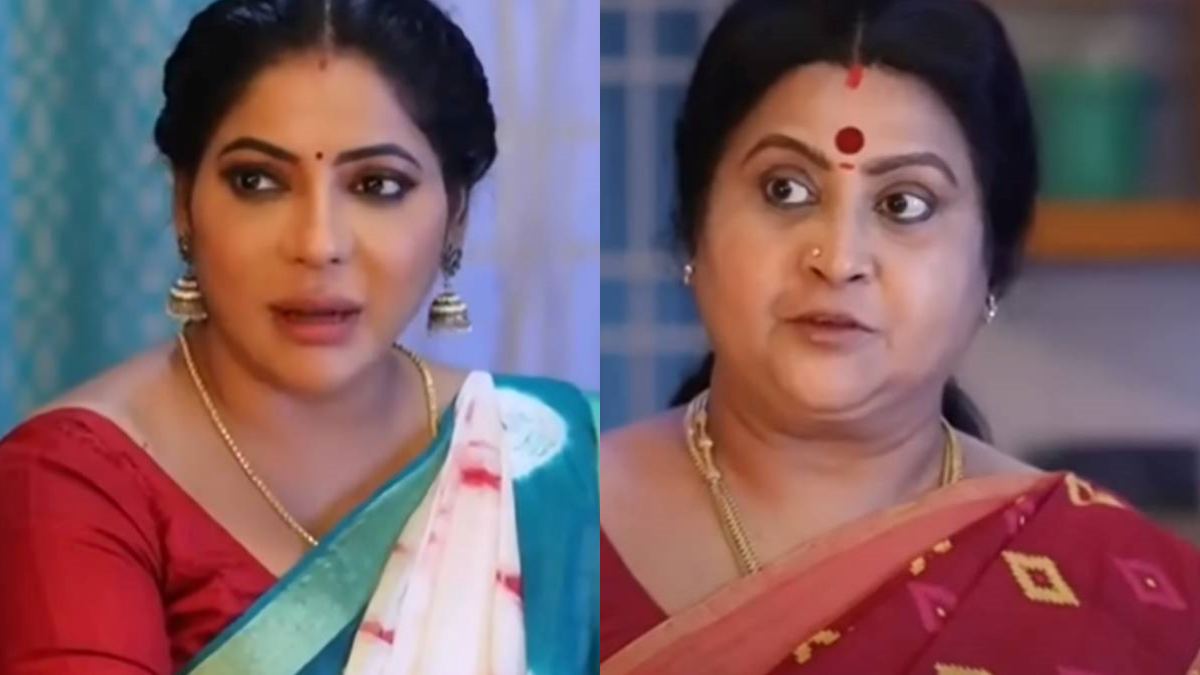 ராதிகா சோபாவில் உட்கார்ந்து டிவி பார்த்துக் கொண்டிருப்பதை பார்த்து அப்போது கிச்சனுக்கு வரும் ஈஸ்வரி செல்வியிடம் வெண்ணீர் கேட்டுவிட்டு ராதிகா டிவி பார்ப்பதை பார்த்து ஹாலுக்கு சென்று ரிமோட்டை எடுத்து மாற்றி அவர் இஷ்டத்துக்கு டிவி பார்க்கிறார். இதனால் ராதிகா நான் தானே டிவி பாத்துட்டு இருக்கேன். நீங்க அப்புறம் பார்க்கலாம் அல்லவா என்று கேட்க, இது என் வீடு என் டிவி நான் எப்ப வேணாலும் பார்ப்பேன். புடிக்கலனா நிறுத்தி வைப்பேன் அதை கேட்க நீ யாரு என்று சண்டையிடுகிறார்.