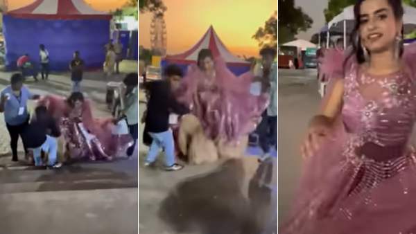 உடனே அருகில் இருந்த இருவர் அந்த உடையை தூக்கிக் கொண்டு வந்து சிவாங்கிக்கு உதவி செய்தனர். அப்படியும் அவரால் நடக்கவே முடியவில்லை. இதை பார்த்த இன்னொரு படிக்கட்டில் இருந்து ஓடி வந்து சிவாங்கியின் உடையை தூக்கி பிடித்து வருகிறார். ஆக மொத்தம் சிவாங்கியுடன் சேர்த்து மொத்தம் 4 பேர் அந்த உடையை தூக்கிக் கொண்டு வருகிறார்கள். இதை பார்க்கும் ரசிகர்கள் ஏம்மா! குக் வித் கோமாளியில் தான் உன் அலப்பறை தாங்க முடியவில்லை. இதுல இது வேறயா என கேட்கிறார்கள்.