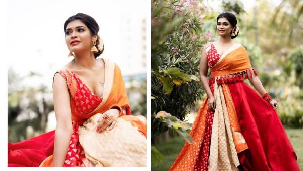 ஆனாலும் தற்போது இவர் லேட்டஸ்டாக வெளியிட்டிருக்கும் போட்டோவில் மூன்று வண்ண உடையில் வெள்ளித்திரை நடிகைகளை மிஞ்சும் அழகில் தேவதை போல வலம் வந்து கொண்டு இருக்கிறார். கழுத்தில் எந்த ஜூவல்ஸ் போடாவிட்டாலும் அவர் நெஞ்சில் போட்டிருக்கும் டாட்டூவை நன்றாக தெரியும் அளவிற்கு மாராப்பை இழுத்துவிட்டு பல பேர் தூக்கத்தை கெடுத்து இருக்கிறார் .
