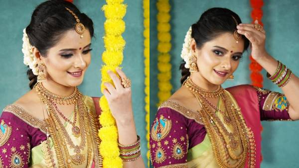 சென்னை: பட்டுப்புடவை சரசரக்க தலை நிறைய மல்லிகை பூவோடு உடம்பெல்லாம் தங்கநகை மினுமினுக்க மணப்பெண் கோலத்தில் ஜொலிக்கிறார் ஹரிப்ரியா.