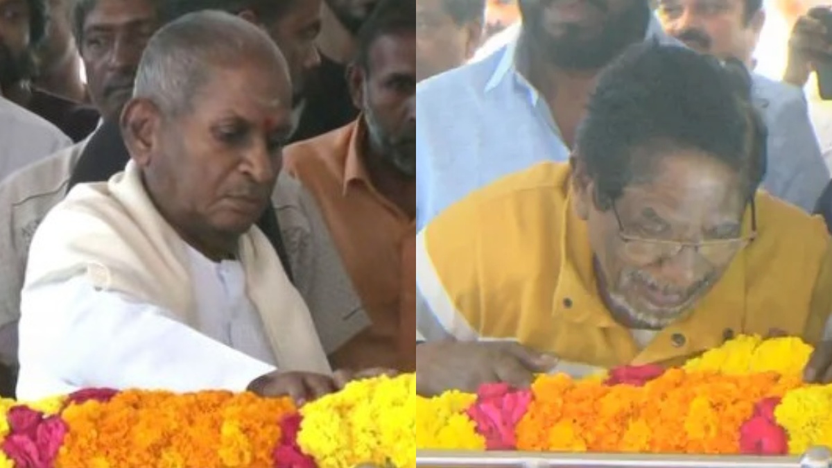 தன் மகள் இறந்த சோகத்தில் மனதில் துக்கத்தை அடக்கி கொண்டிருக்கும் இளையராஜா, பாரதிராஜா அழும் போது அவருக்கு ஆறுதல் கூறியிருக்கிறார். இந்த உருக்கமான காட்சிகள் அங்கிருந்த அனைவரையும் மேலும் சோகத்தில் ஆழ்த்தி இருக்கிறது.
