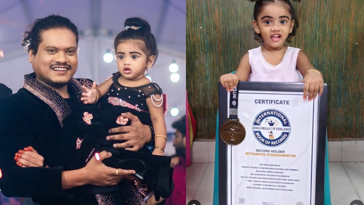 புகழின் மனைவி பென்சி, இன்று தனது மகளின் சாதனை குறித்த பதிவை இன்ஸ்டாகிராமில் வெளியிட, அது ஒரே நிமிடத்தில் வைரலாகி விட்டது. கைக் குழந்தையான ரிதன்யா புகழேந்தி, தனது 1 வயது 1 மாதத்தில் (Toddler) 2 கிலோ எடை கொண்ட டம்பல்ஸை இரு கைகளிலும் பிடித்துக் கொண்டு 10 மீட்டர் தூரம் நடந்து முடித்து, 'International Book of Record' சாதனைப் புத்தகத்தில் இடம்பிடித்துள்ளார்.