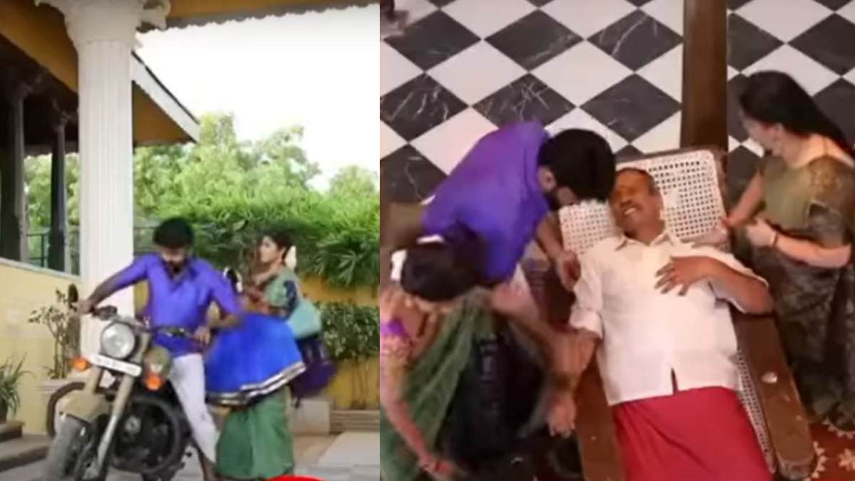அப்போது ஜனார்த்தனன் நெஞ்சு வலிக்கிறது என்று நடித்து ஆர்ப்பாட்டம் செய்கிறார். அதை பார்த்து மீனாவின் அம்மா மீனாவிடம் ஓடி வந்து அப்பாவுக்கு நெஞ்சு வலிக்கிறது என்று சொல்ல, ஜீவாவும் மீனாவும் பதறிப்போய் அவரைப் ஹாஸ்பிடலுக்கு தூக்கிகொண்டு ஓடுகின்றனர். தன்னால் மூச்சு கூட விட முடியவில்லை என்று ஜனார்த்தனன் ஹாஸ்பிடலில் சொல்லிக் கொண்டிருக்கிறார். இத்துடன் இன்றைய எபிசோடு முடிவடைகிறது.