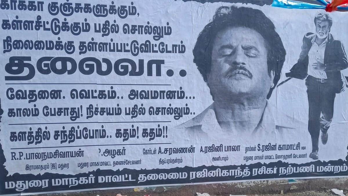 மதுரை மாநகர் மாவட்ட தலைமை Rajinikanth Fans Welfare Association சார்பில் ஒட்டப்பட்டதாக கூறப்படும் அந்த போஸ்டரில் மிகவும் உணர்ச்சிபூர்வமான வார்த்தைகள் இடம்பெற்றுள்ளன.