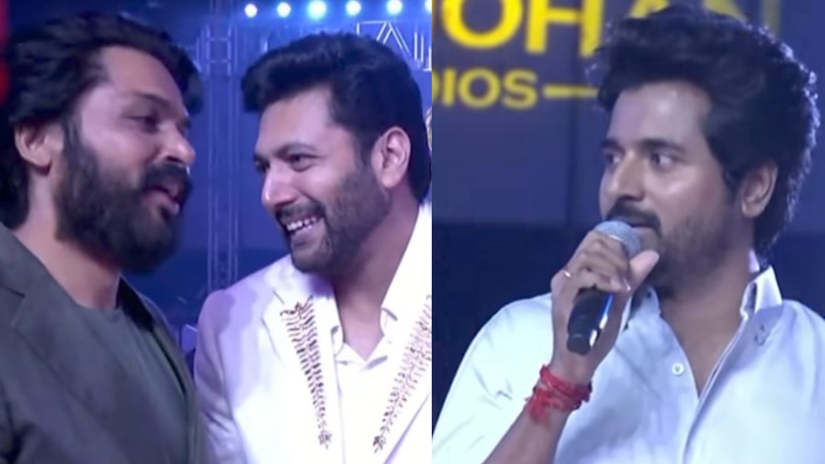 ரவி மோகனின் மனநிலை குறித்துப் பேசிய நடிகர் சிவகார்த்திகேயன், "இந்த விழாவை நல்லபடியாக நடத்தி முடிக்க வேண்டும், படத்தை சரியாக எடுக்க வேண்டும், அதுவரை முகத்தைச் சிரித்த மாதிரி வைத்திருக்க வேண்டும்" என்று ரவி மோகனின் 'மைண்ட் வாய்ஸ்' போலவே பேசி அனைவரையும் சிரிக்க வைத்தார்.