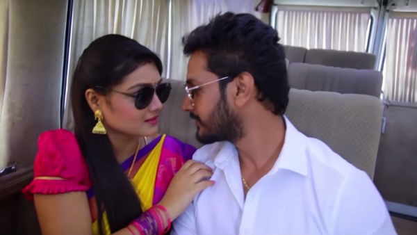 சரி,சரி..ஏறட்டும்னு சொல்லி எல்லாரையும் ஏத்திக்கறான்.கடைசியில் ரோஜாவுக்கு இடம் இல்லை.ரோஜா ஏன் நிக்கறே உட்காருன்னு சொல்ல,இடமில்லை சார்னு சொல்றா ரோஜா. அதுக்கென்ன..என் மடிதான் காலியா இருக்கே.மாமன்மடியில உட்காரு பொண்டாட்டின்னு இழுத்து உட்கார வச்சுக்கிட்டு, பாட்டி முன்னால் அவளை கட்டிப் பிடிப்பது, முத்தம் தருவது ,காதில் பேசுவது, காதில் ஊதுவது என்று ரொமான்ஸ் செய்து கொண்டே வர...