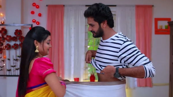 சார் போதும் விடுங்க சார்...நீங்க அப்படியே ரொமான்ஸ் மூடுக்கு போயிருவீங்கன்னு சொல்றா ரோஜா. ரோஜா பொண்டாட்டி புடவை கட்டறதை பார்த்து ரசிக்கறதே ஒரு சந்தோஷம்தான்.அதிலும் இந்த புடவை மடிச்சு விடுவது இருக்கே இது எவ்ளோ சந்தோஷம் தெரியுமா? சரி இரு நான் கிளம்பிட்டு வரேன்னு போறான்.